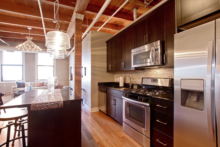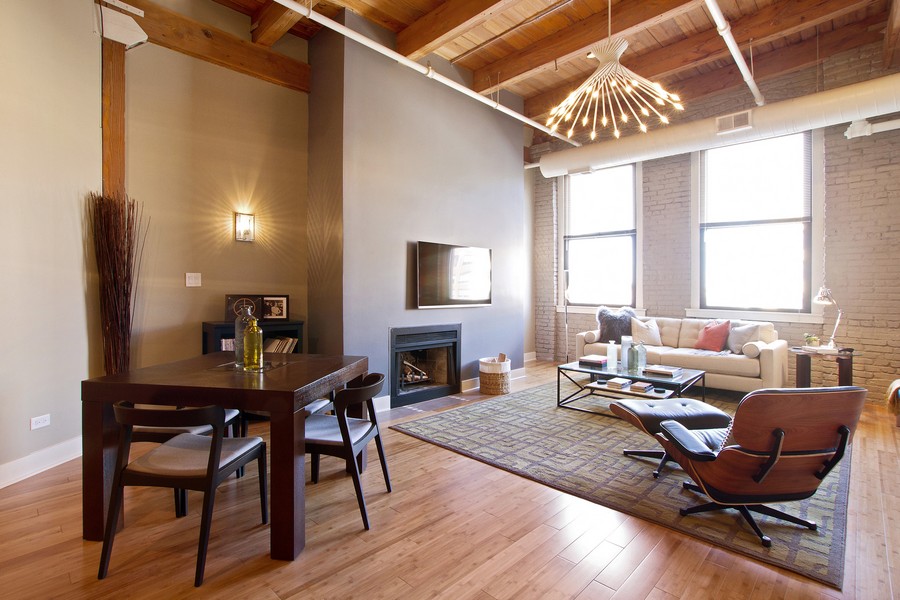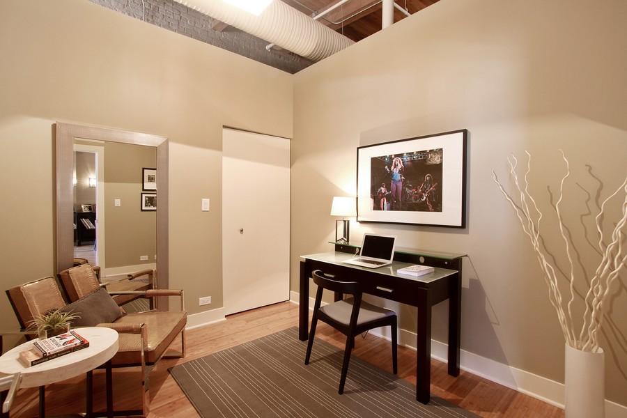The loft was painted a neutral gray and bamboo floors were put in for easy maintenance.