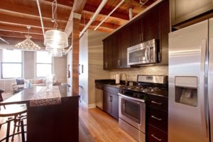 We managed to take the space into a 2-bedroom, 1-bathroom loft. The new floor plan allowed for a large master bedroom with a walk-in closet, a second bedroom with a reach in closet and nice size bath with large shower.