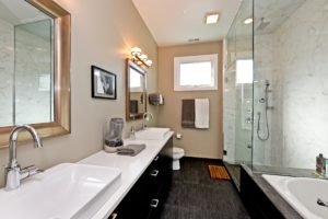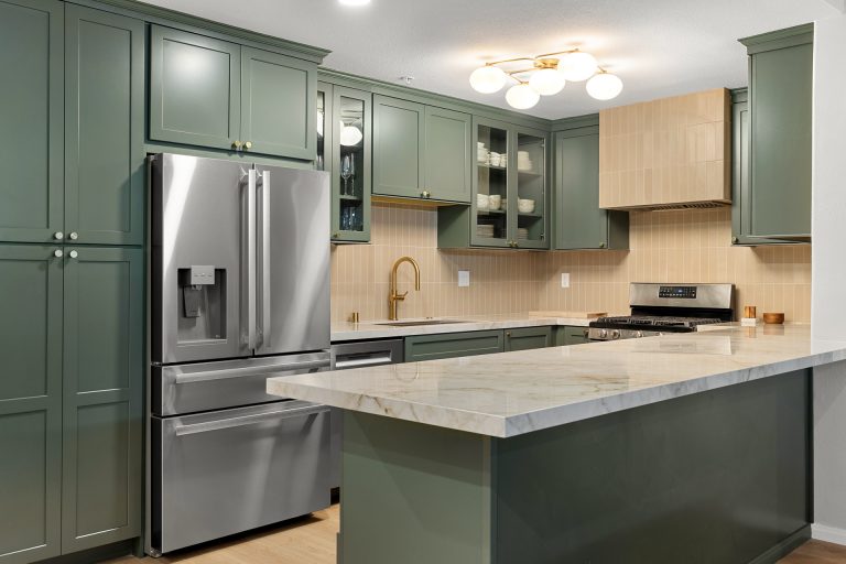There were many custom touches added to this home. The finishes flowed throughout to create a sense of calm. We wanted the home to have continuity in this way. The kitchen had white shaker cabinets, custom raising hinges on the uppers, honed granite countertops, 3d marble backsplash and custom drawer pullouts.
