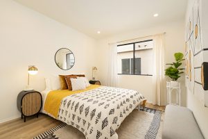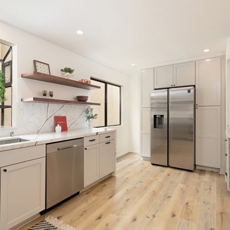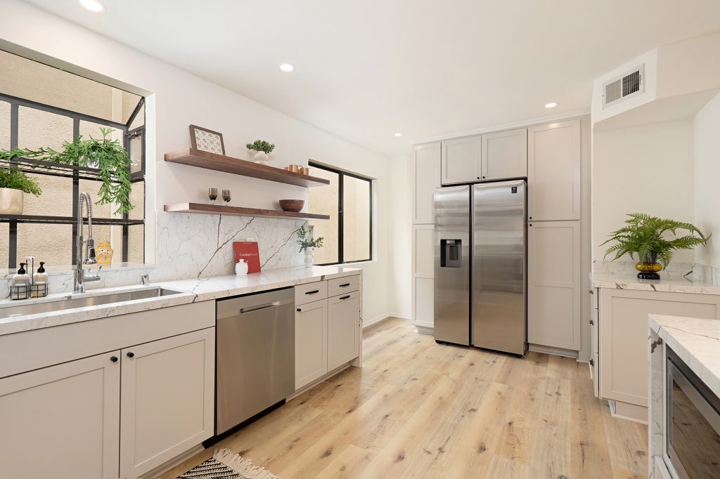 This Moorpark St Townhouse was completely original. Nothing had ever been touched over the decades. The home posted its original carpet throughout, kitchen appliances, etc. We went in and completely gutted the home. We opened up the kitchen, reworked the primary bedroom and bathroom layouts, and of course updated the finishes. The showpiece was really the kitchen. A mixture of materials including walnut gave it a modern but warm feel that will look fresh for years to come.